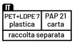 | Consigli per la conservazione: | Conservare a temperatura ambiente, Conservare in un luogo asciutto, Non conservare al sole |