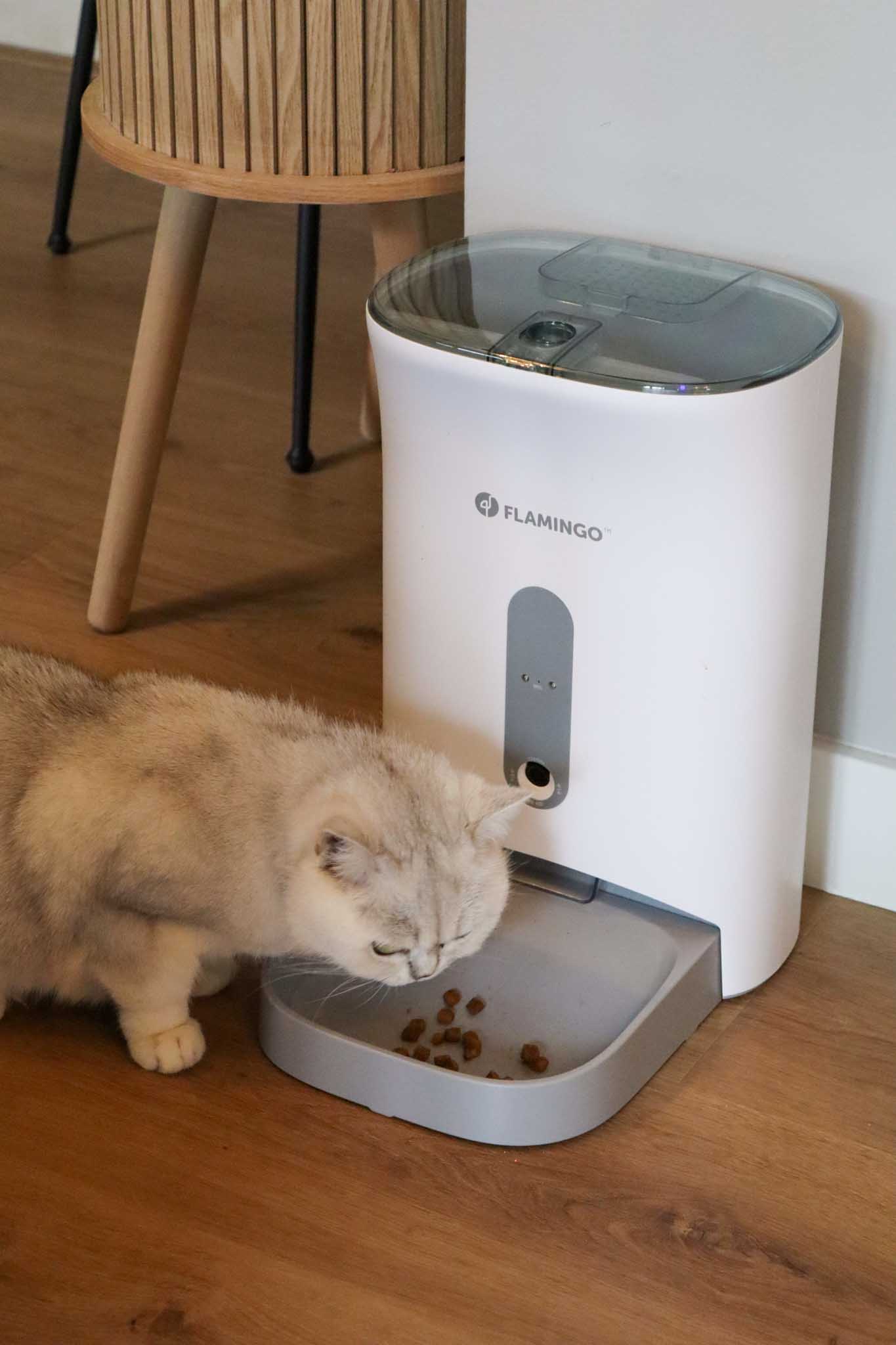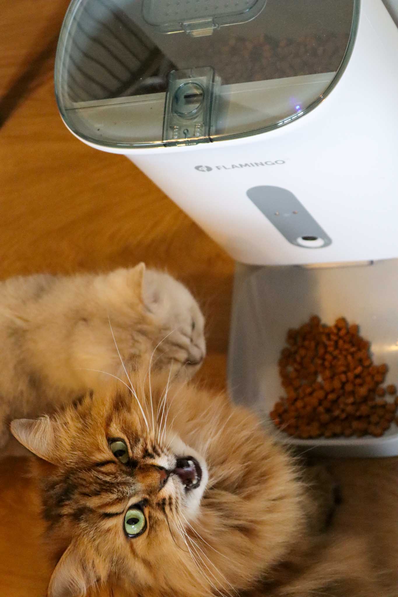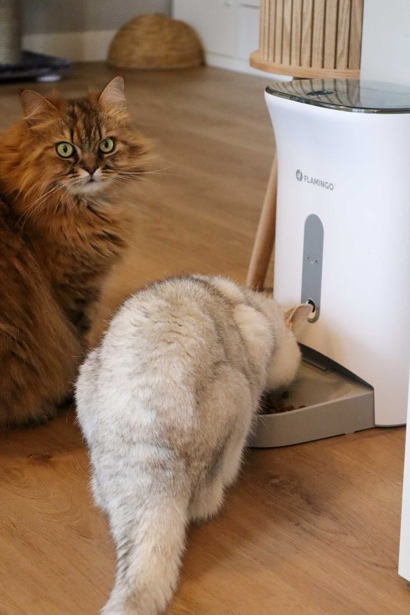 - Het geluid van het voer dat in het bakje valt, was even wennen voor de katten