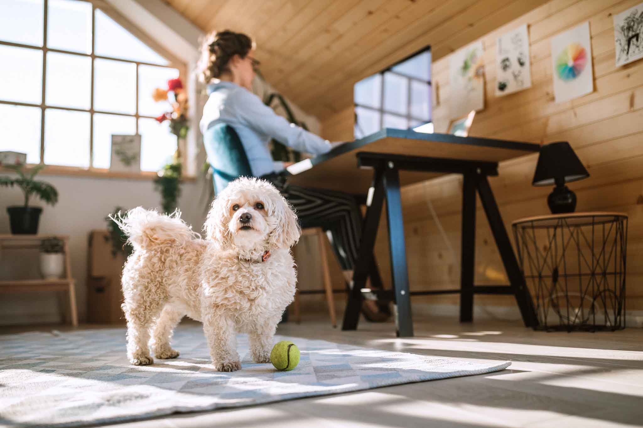 Zorg ervoor dat je een plek hebt waar je geconcentreerd kunt werken, met voldoende ruimte voor je huisdier om naast je te ontspannen. Een vaste plek bij jouw bureau is ook handig om je hond aan te leren, zodat hij altijd dicht bij je kan zijn.