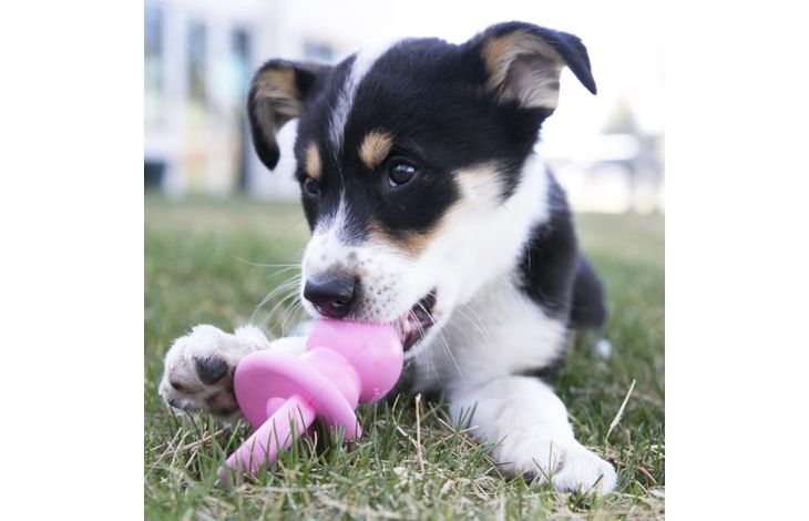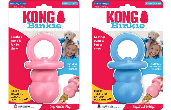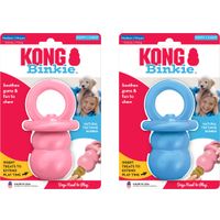 De Kong Binkie is het perfecte speelgoed voor je hond! Gemaakt van zacht rubber, verzacht het pijn aan het gebit en tandvlees. Vul het met snacks of smeerpasta voor extra plezier! Beschikbaar in meerdere kleuren.